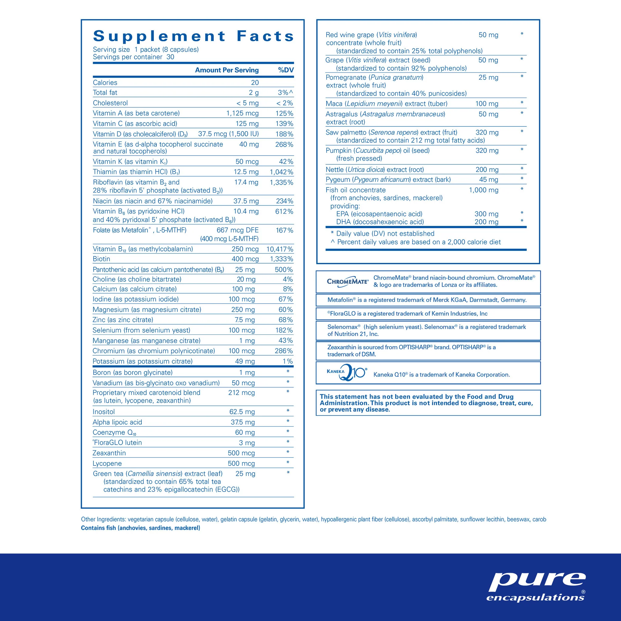 All the nutrients men over 40 need, in one convenient daily packet. This men’s vitamin pack offers our comprehensive Men’s Nutrients, a multivitamin and mineral complex that supports the prostate, heart, energy, stamina and eyes. The packet also includes EPA/DHA fish oil and coenzyme Q10, both supporting cardiovascular health.‡